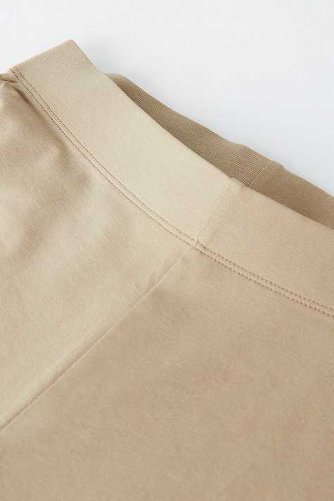 Biker shorts with an elastic at the waist. The shorts are beige and short.