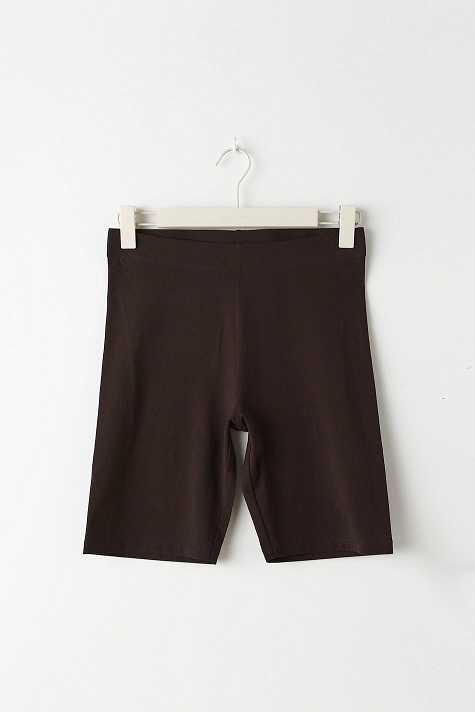 Short bikershorts with fitted fit. The shorts are brown and have an elastic at the waist.