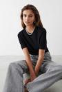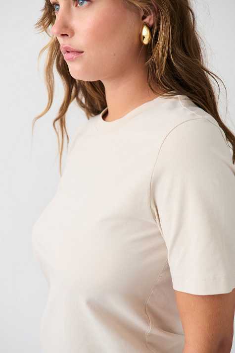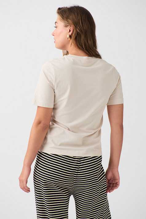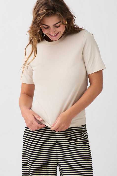 Soft t-shirt with normal fit. The t-shirt is beige and has rounded neckline.