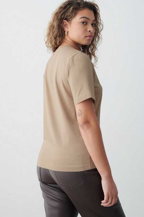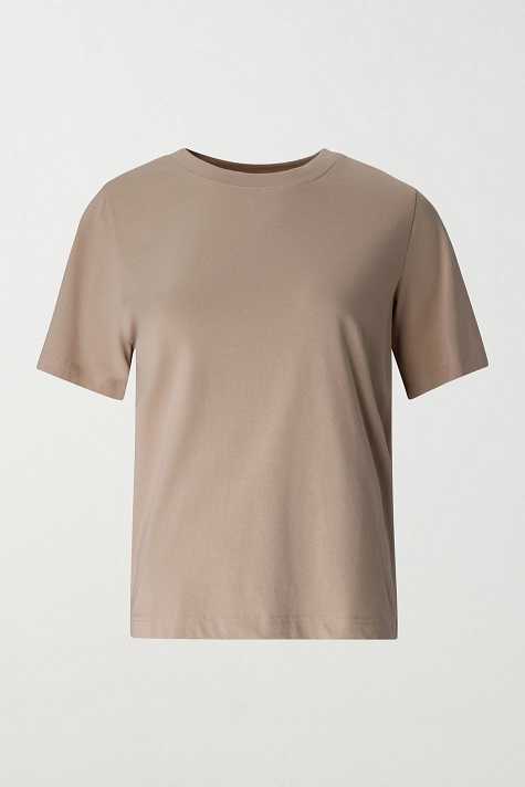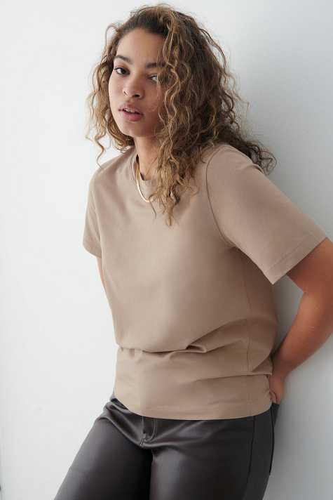 Soft t-shirt with normal fit. The t-shirt is beige and has rounded neckline.