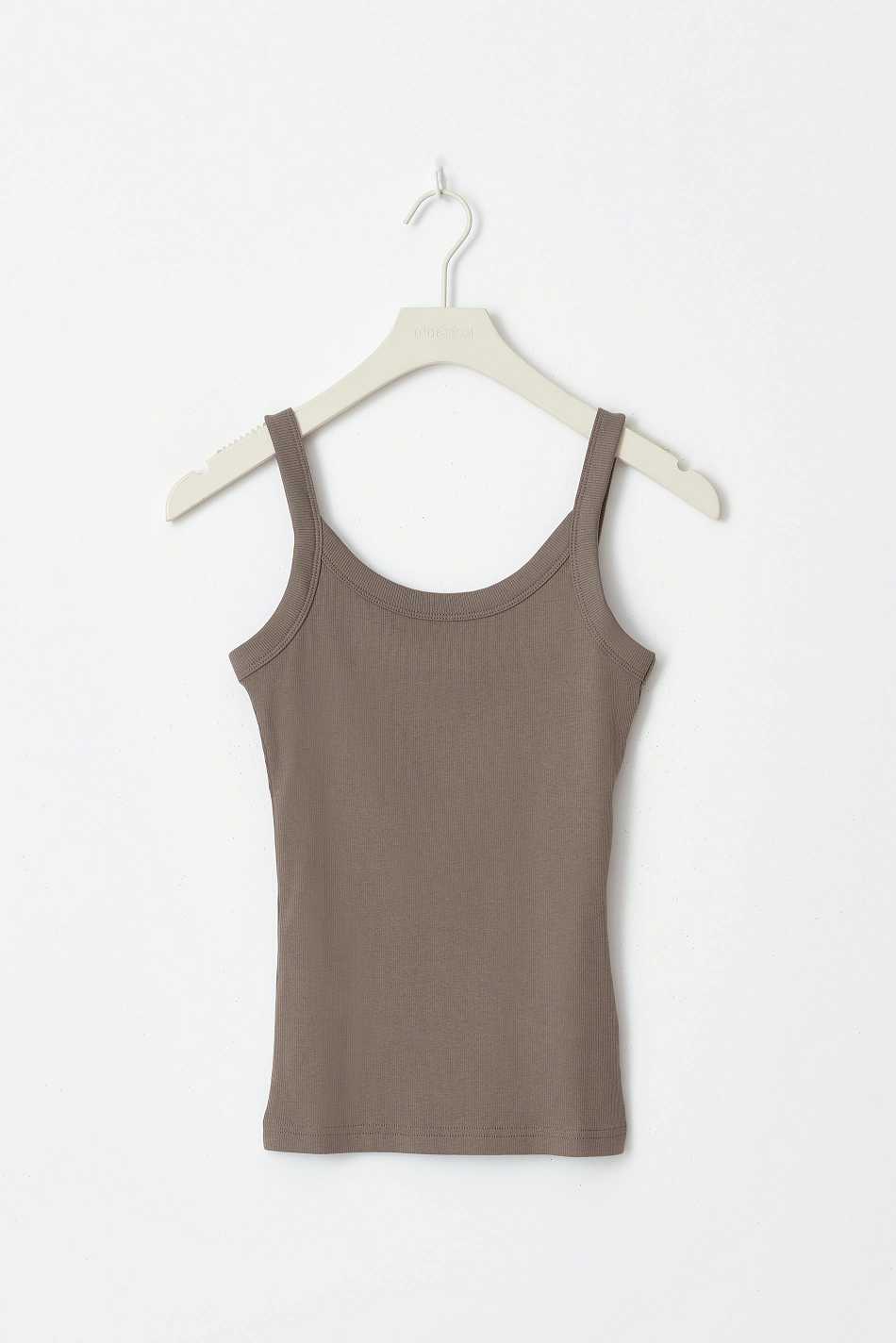 Ribbed singlet in jersey with figure-hugging fit. The singlet is beige and has ribbed shoulder straps.