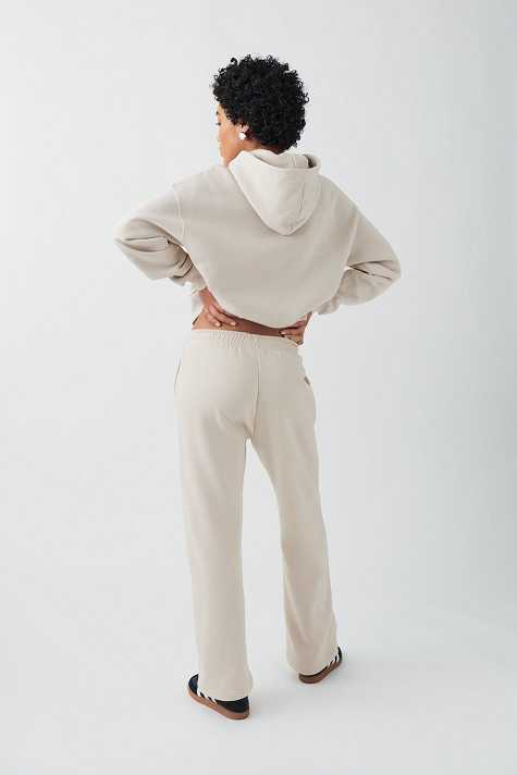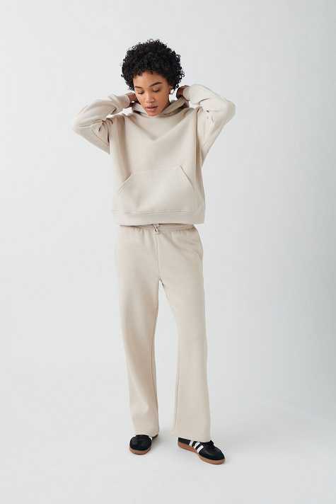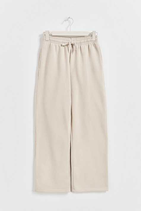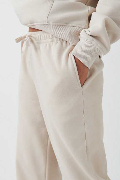 Tracksuit trousers with normal fit. The trousers are beige and have pockets in the sides. They have straight legs and elastic at the waist with self-tie at the front.