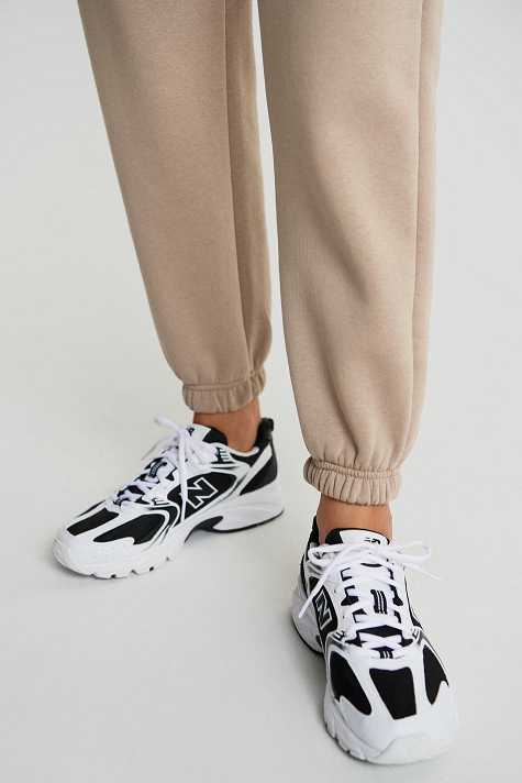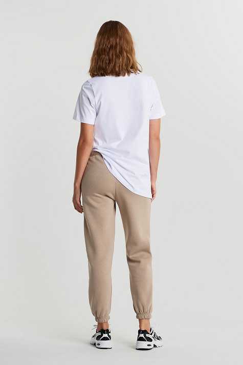 Tracksuit trousers with a regular fit. The trousers are beige and have an elastic band at the waist and at the end of the legs.