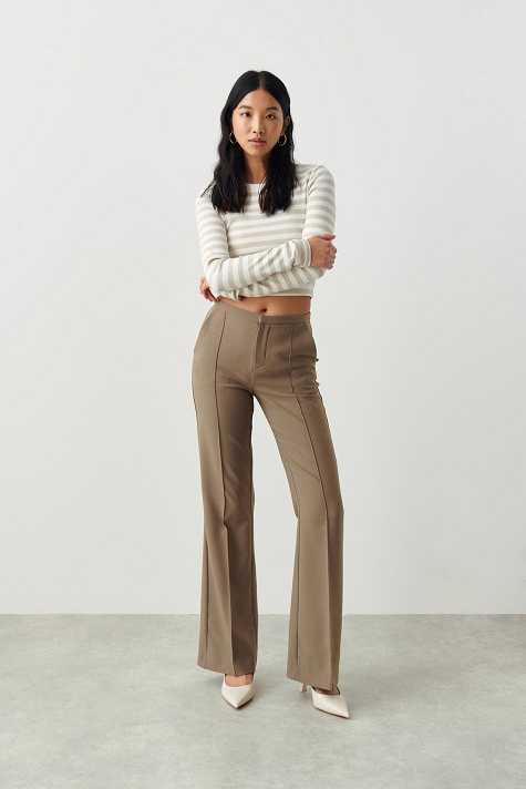 Beige Women Gina Tricot Bootcut Trousers | 81EUJBVOY