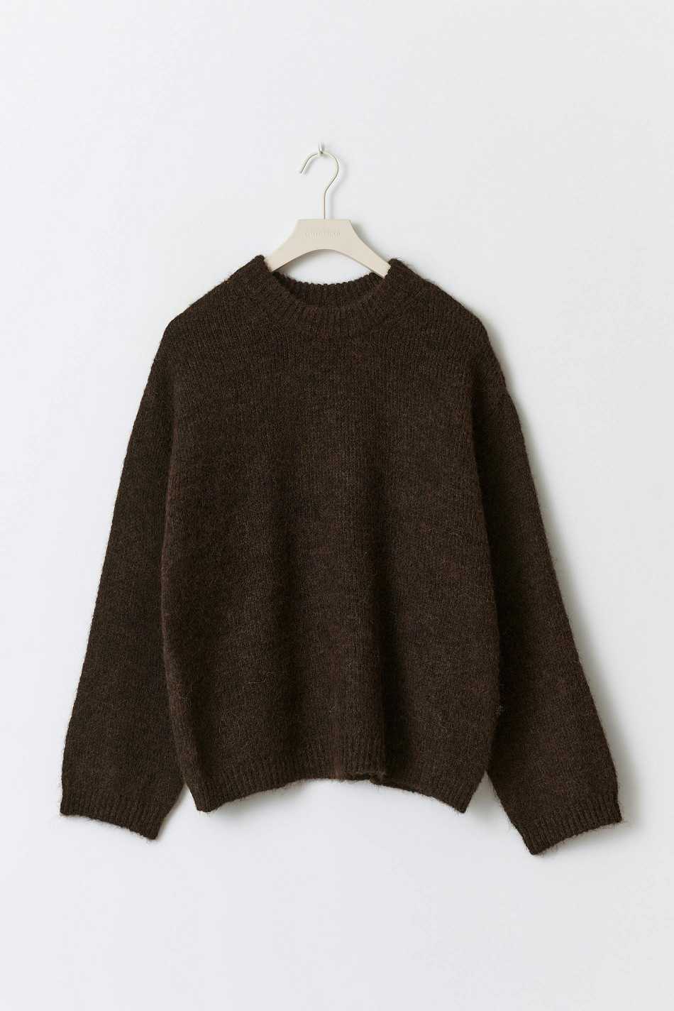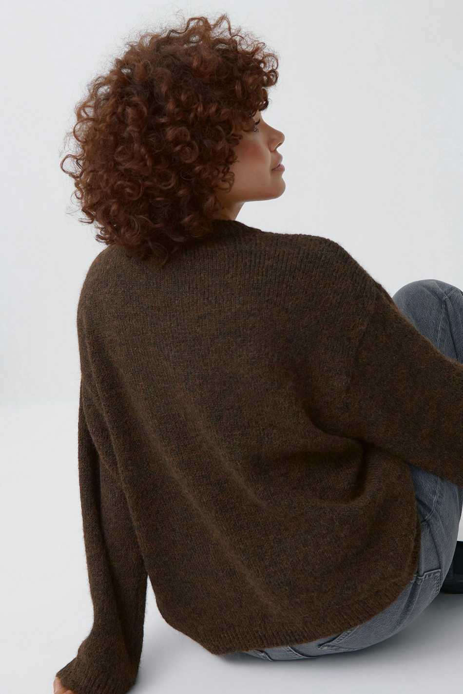 Knitted sweater with oversize fit. The sweat is brown and has round neckline. It has long sleeve and rib knit at sleeve ends and at the bottom.