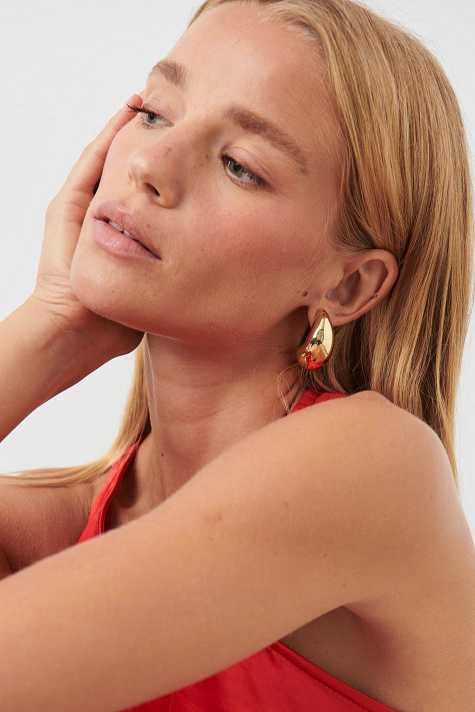 Drop shaped earrings with gold coloured finish.