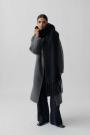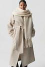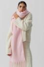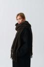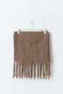 Big scarf with fringes along the short sides. The scarf is beige and has chunky fit.