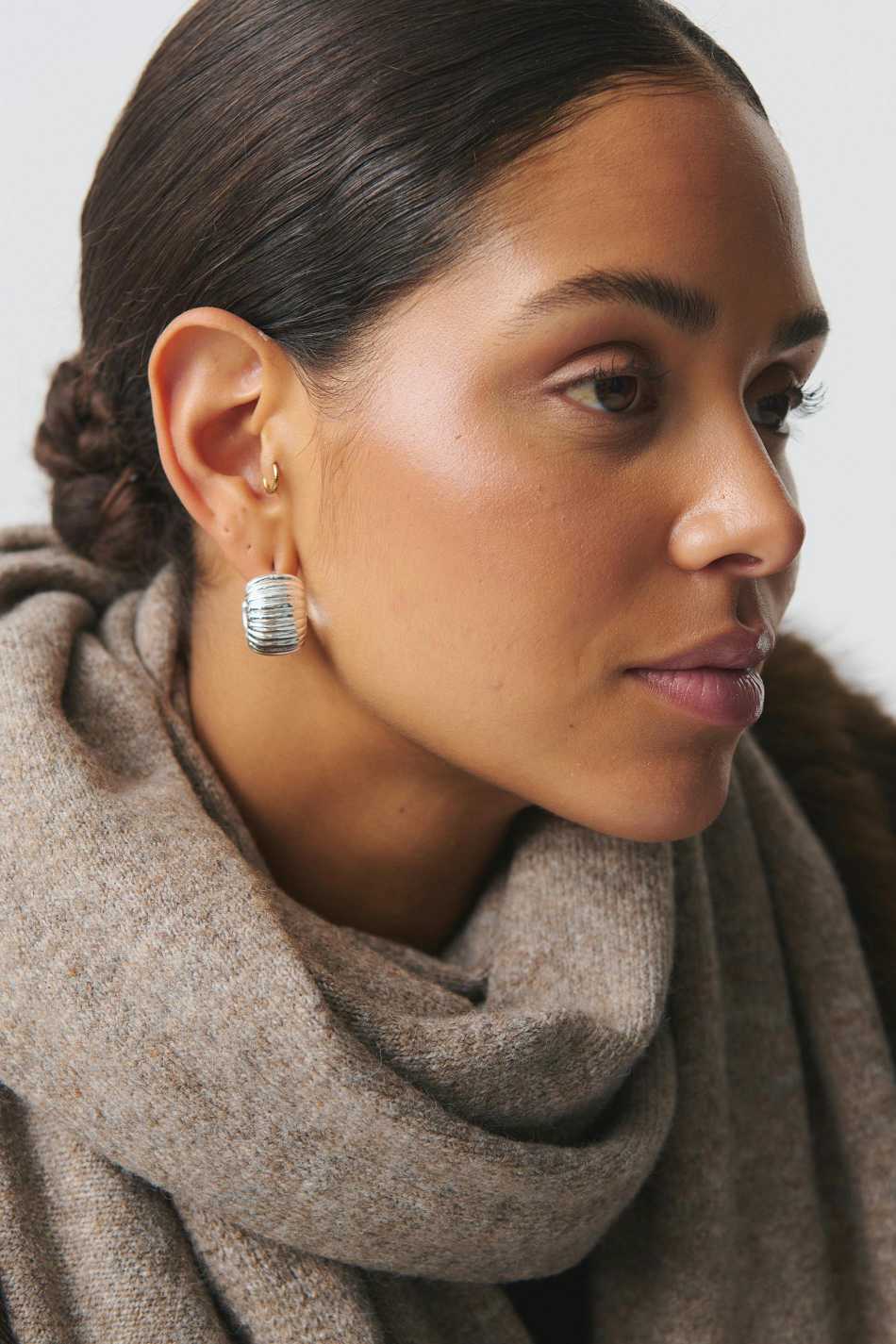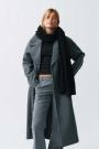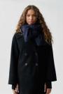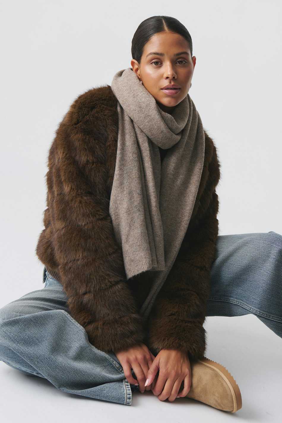 Knitted scarf with ribbed trims. The scarf is beige and has soft quality.