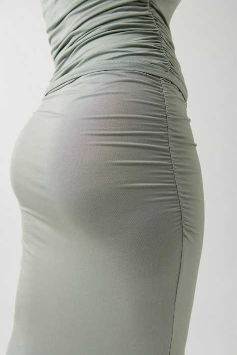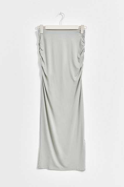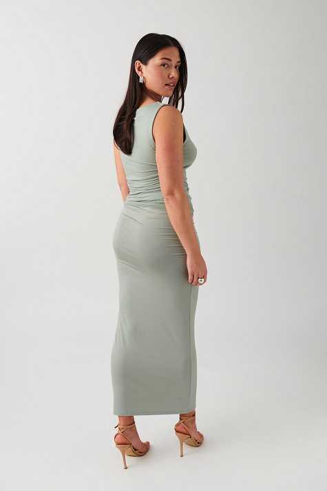 Soft touch – second skin comfort. Maxi skirt in soft viscose with ruching in the sides. The skirt is green and has figure-hugging fit.