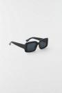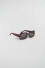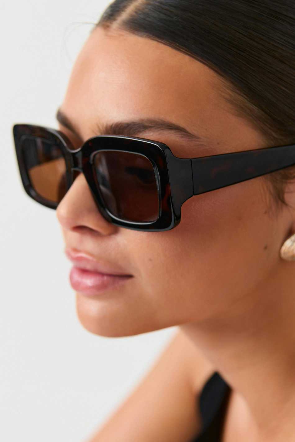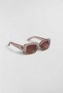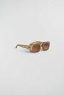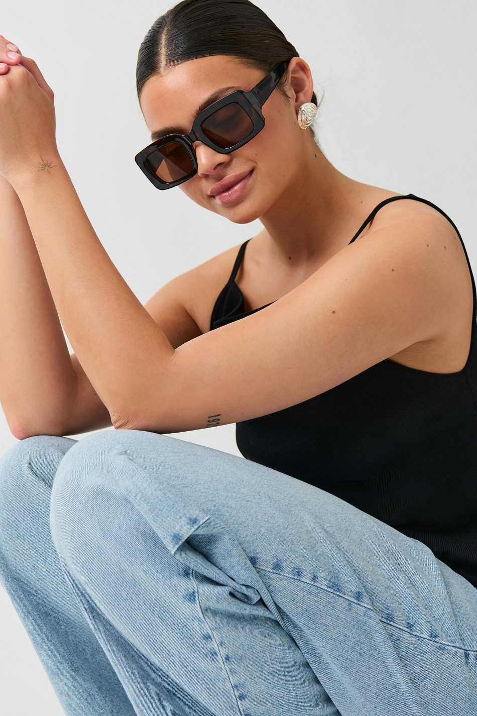 Rectangular sunglasses with a big plastic frame in 100% recycled plastic. The sunglasses is dark brown and has a glass with UV400 protection.
