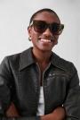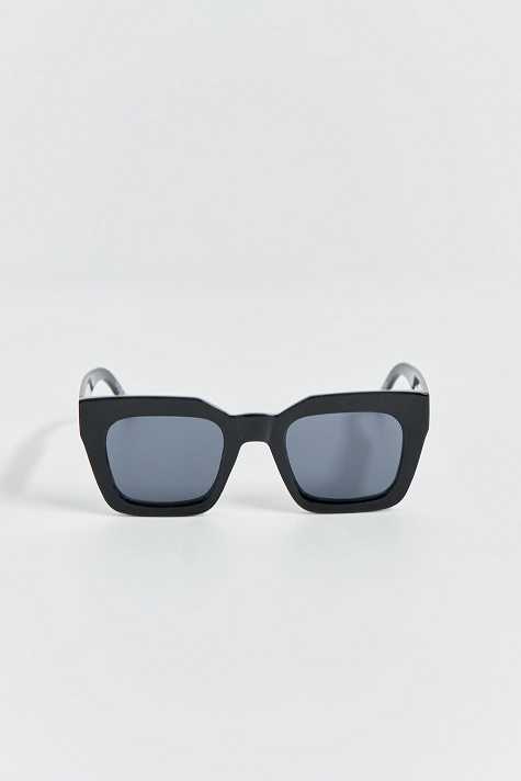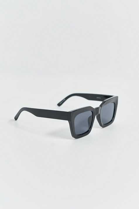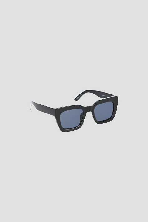Sunglasses with chunky plastic frames. The sunglasses is black and has tinted glasses with UV400 protection.
