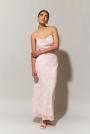 Sleeveless maxi dress in mesh with sequins. The dress is black and has open back. It has tie knot detail at the back, cowl neck and narrow shoulder straps crossing at the back. Lined.