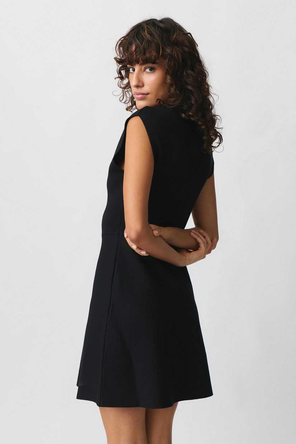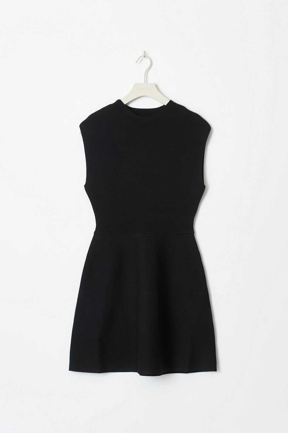 Short knit dress with round neckline. The dress is black, A-line shaped and sleeveless and has regular fit.