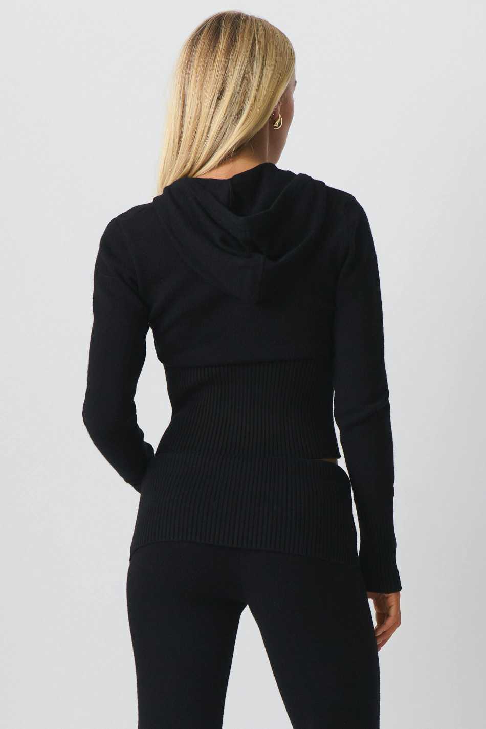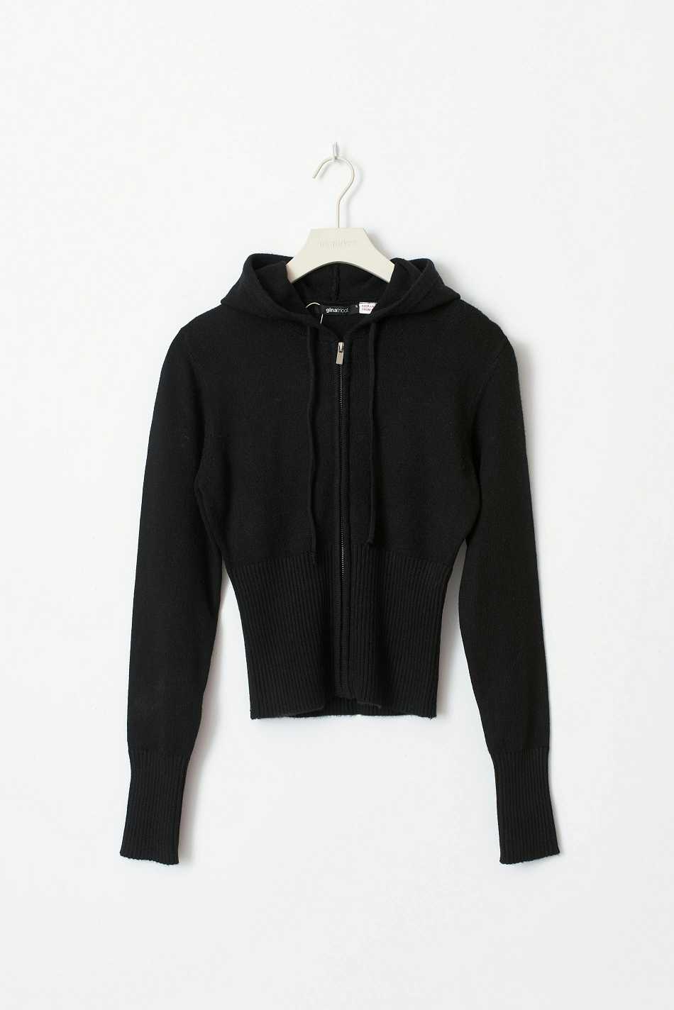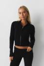 Knitted jacket with zip closure at the front. The jacket is black and has long sleeve. It has regular fit.
