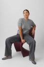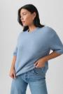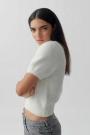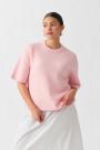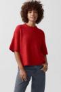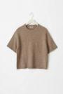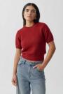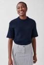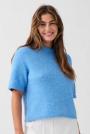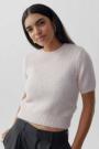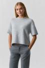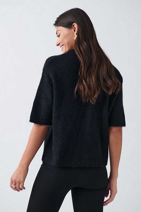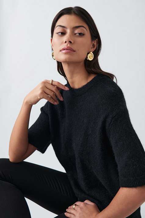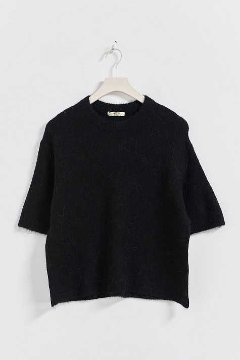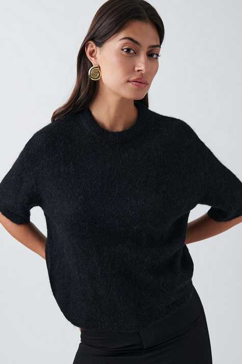 Short-sleeved knitted sweater with round neckline. The sweat is black and has soft quality. It has figure-hugging fit and rib knit at sleeve ends and at the bottom.