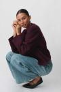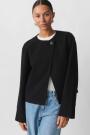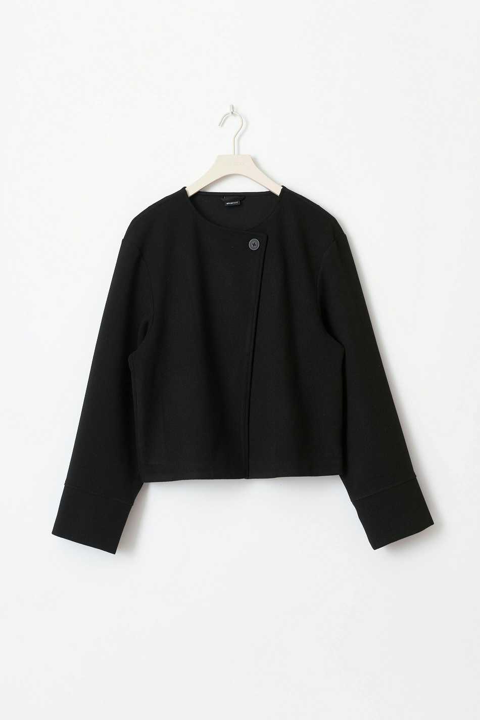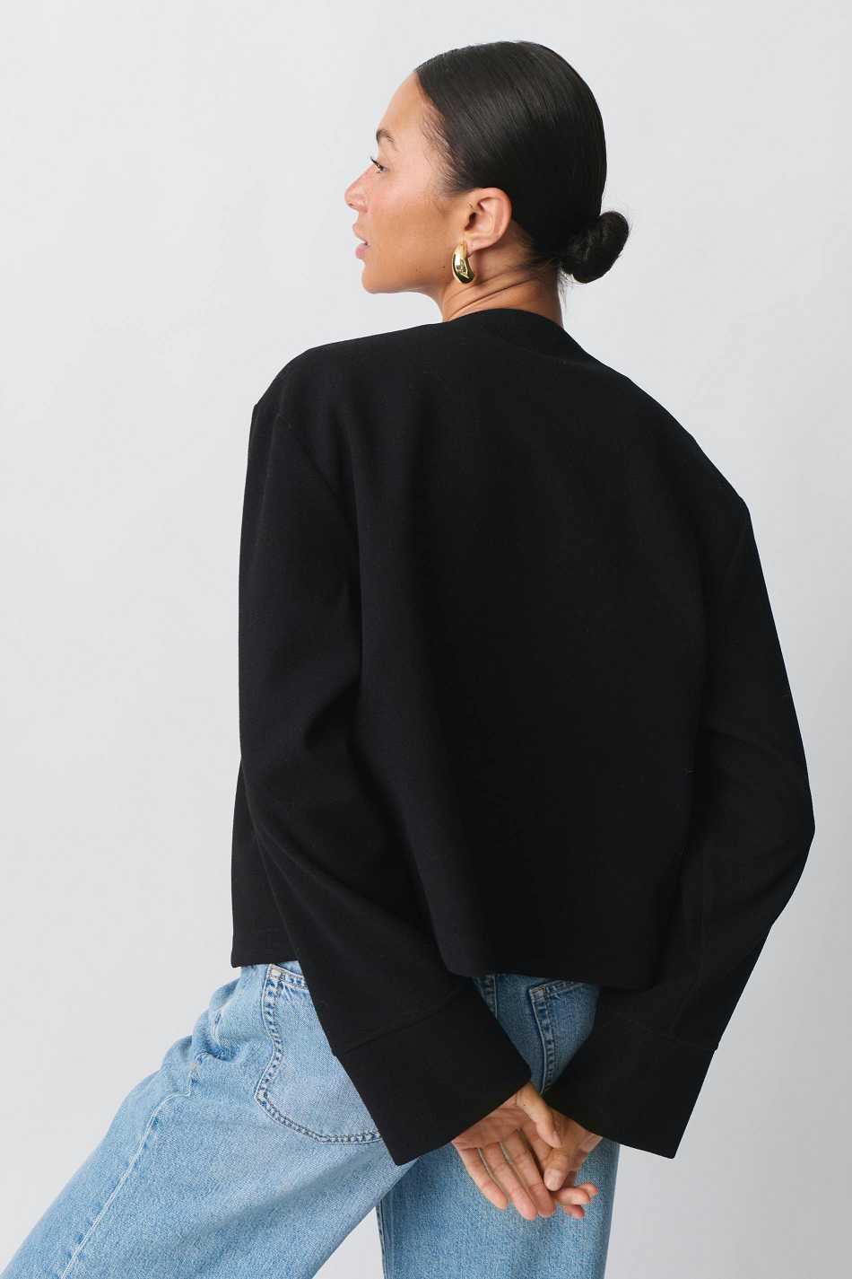 Jacket with oversize fit. The jacket is black and has one-button fastening. It has round neckline, pockets in the sides, long sleeve and regular length.