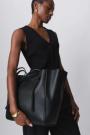 Big bag with magnetic closure. The bag is black and has double handles. The bag is designed with adjustable knots on both sides, making it easy to customize its size.