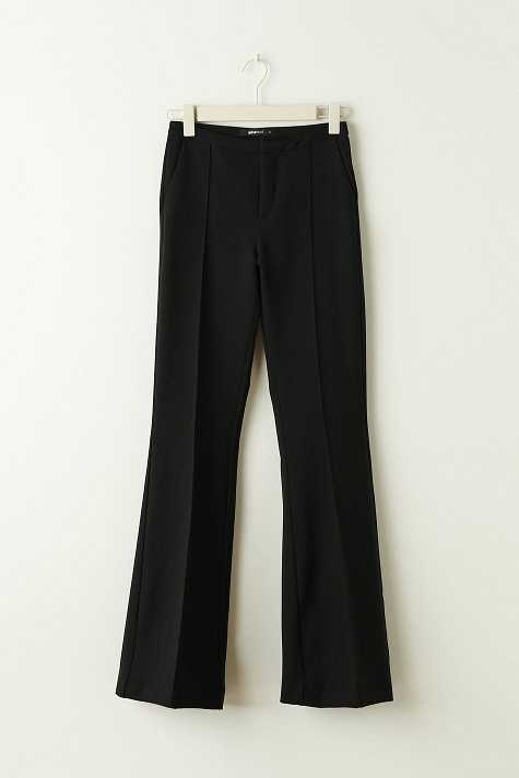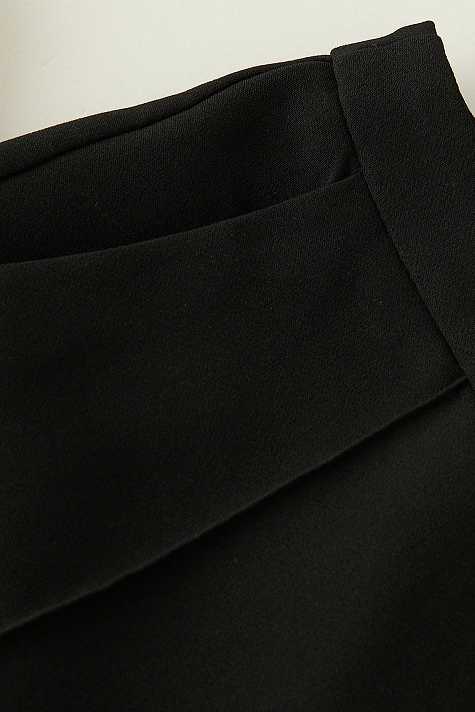 Stretchy trousers with high waist. The trousers are black and have a slim fit. They have cropped legs, fake pockets at the back, zip fly and slit at hem. Perfect for those who are 175 cm (5 ft 9 in.) or taller.