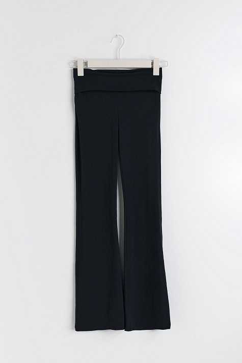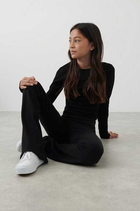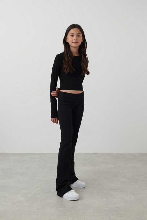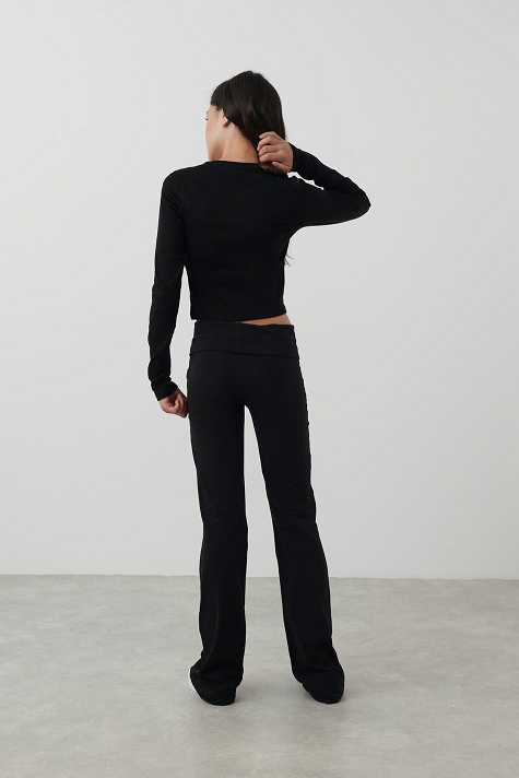 Ribbed trousers by Gina Tricot Young with low waist. The trousers are black and have flared legs. They have super soft quality and turn-down waistband.