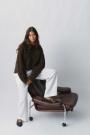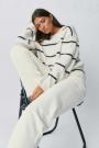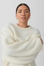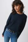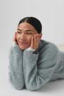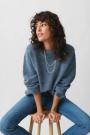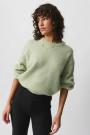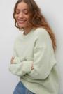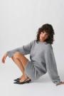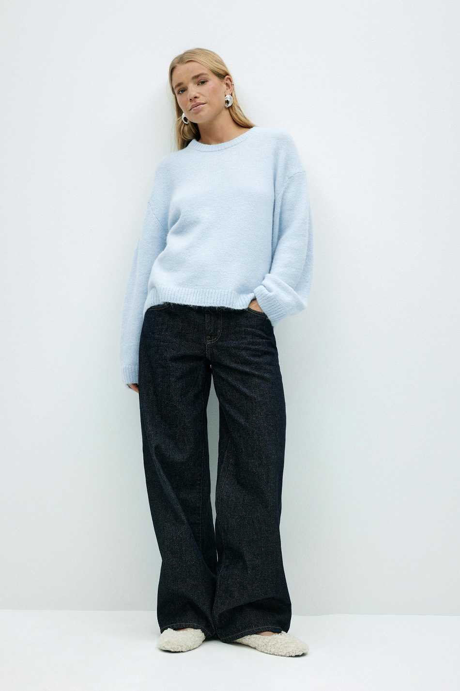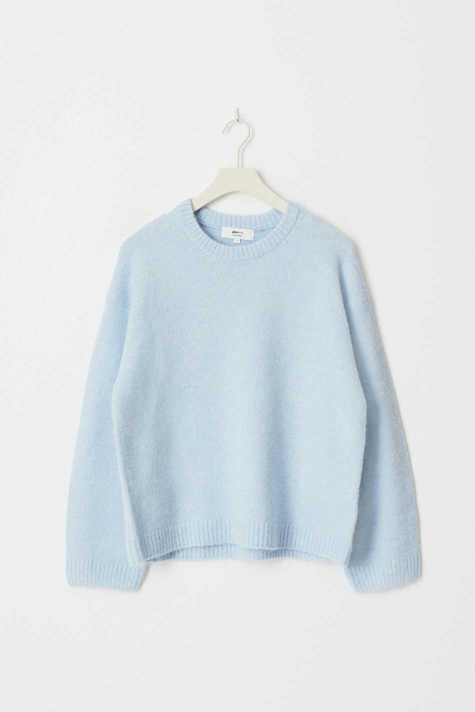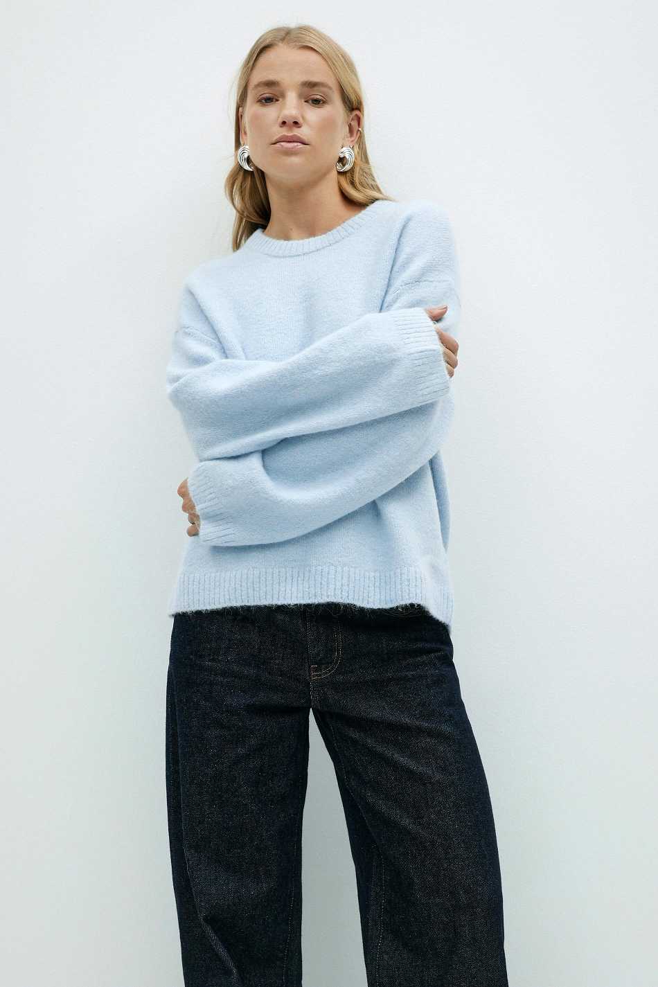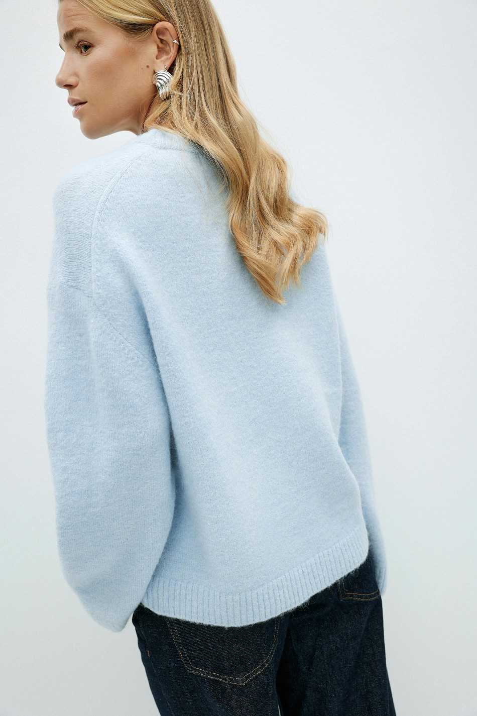 Knitted sweater with round neckline. The sweat is light-blue and has oversize fit. It has balloon sleeve, regular length and rib knit at sleeve ends and at the bottom.