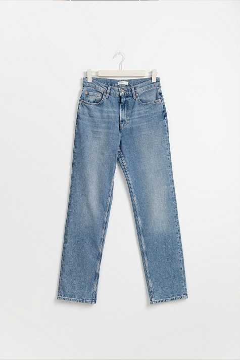 Straight jeans with mid waist. The jeans are blue and have straight, comfy fit with stretch. They have zip fly, extra long trouser legs and pockets at the front and back. Perfect for those who are 175 cm (5 ft 9 in.) or taller. Use our size guide to find your size.