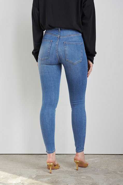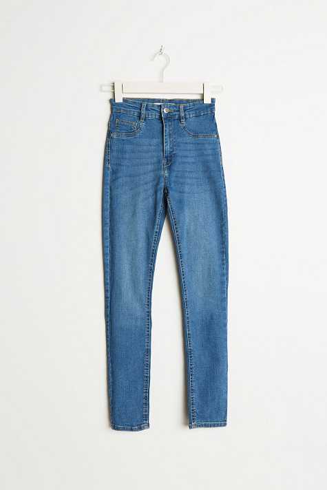 Petite highwaist jeans with a fitted fit. The jeans is blue and comfortable and has a superstretch. It has a skinny fit, a high waist and fake pockets at the front. Perfect for those who are 160 cm (5 ft 3 in.) or shorter.