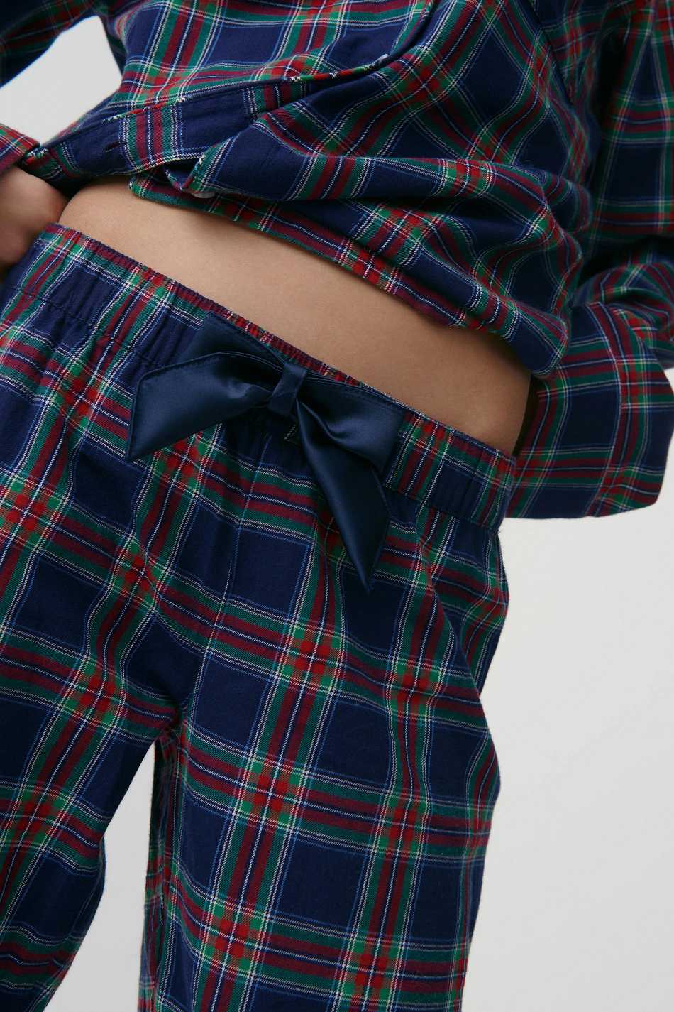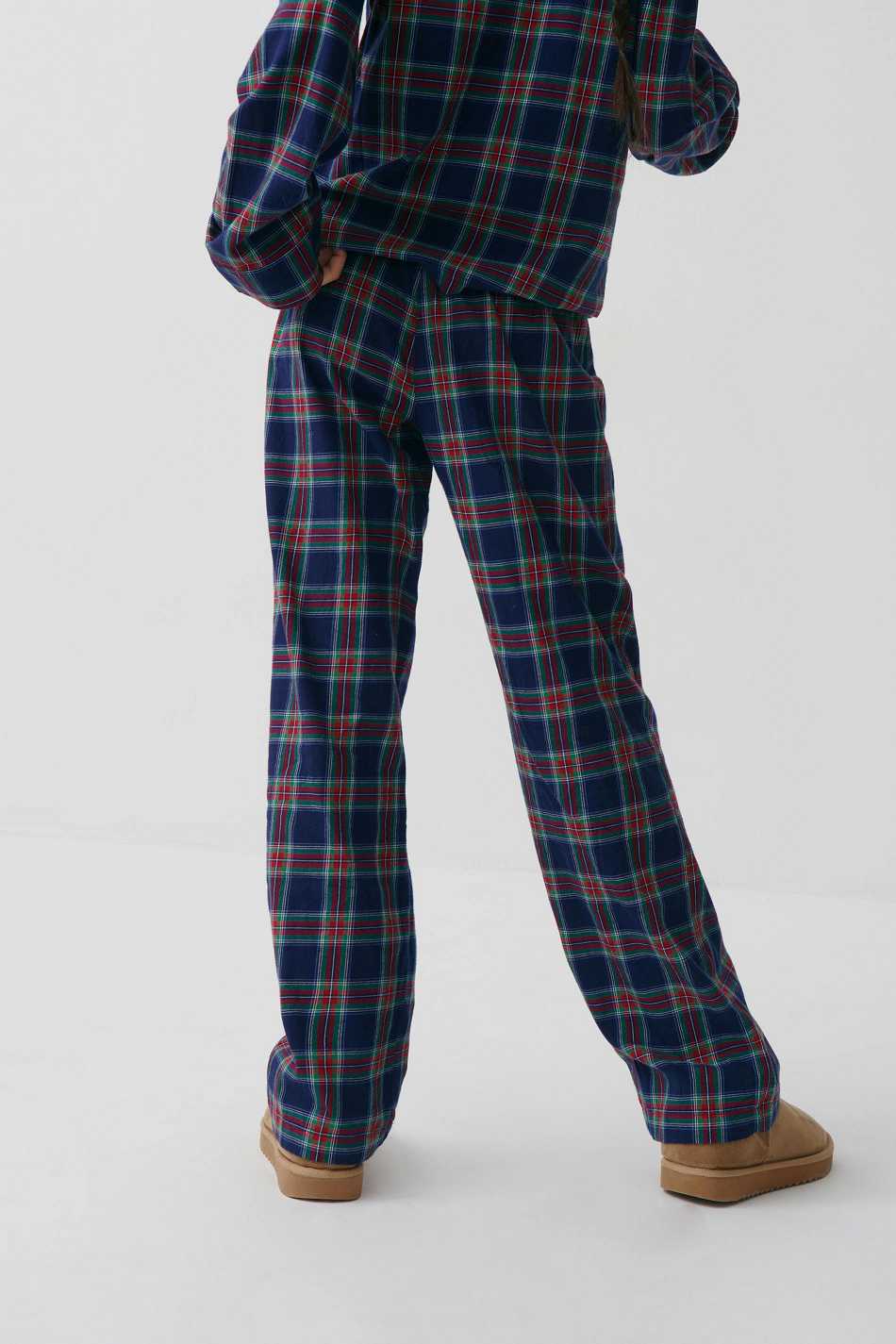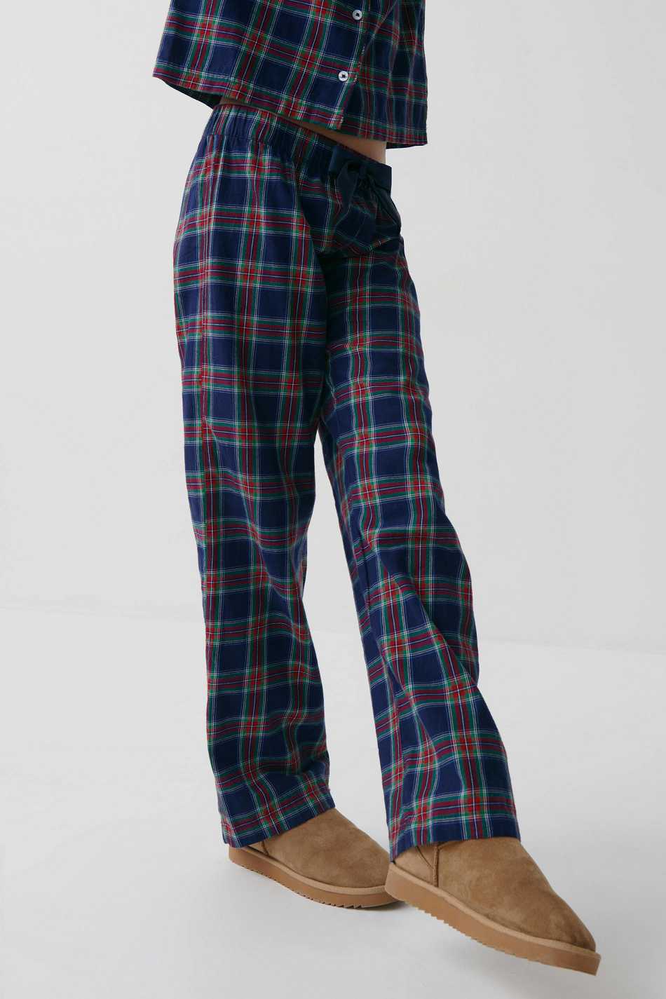 Checked pyjama tracksuit trousers in flannel with bow at the front. The pyjama tracksuit trousers are red and blue and have low waist. They have regular fit, straight legs and elastic at the waist.