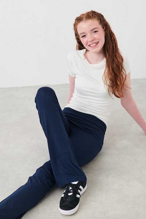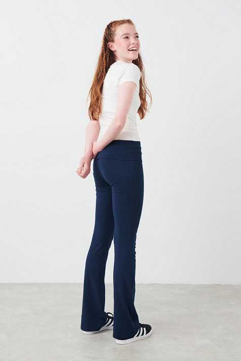 Yoga pants in jersey with low waist. The trousers are navy and have super soft quality. They have flared legs and turn-down waistband.