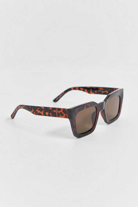 Tortoiseshell patterned sunglasses with chunky plastic frames. The sunglasses is brown and has tinted glasses with UV400 protection.
