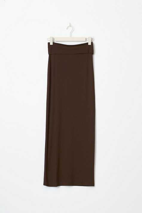 Soft touch – second skin comfort. Maxi skirt in soft viscose with turn-down waist. The skirt is brown and has regular fit.