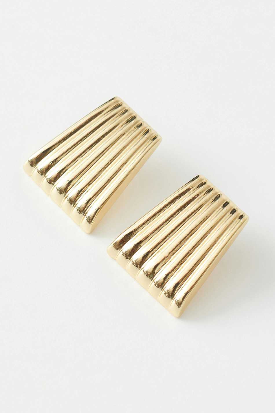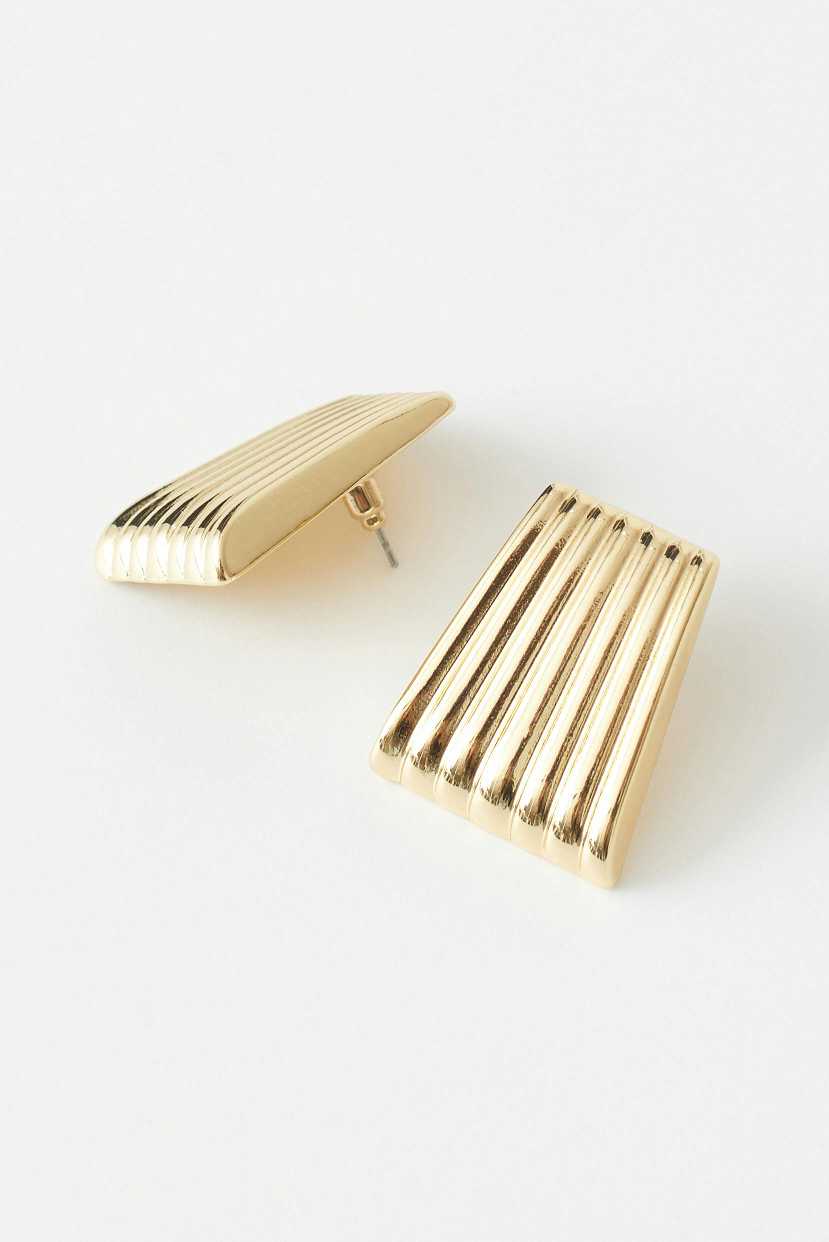 Squared earrings with fluted surface. The earrings are gold coloured and have shiny finish.