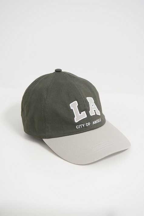 Cap in cotton with embroidered text. The cap is green and has adjustable tab with metal buckle at the back.