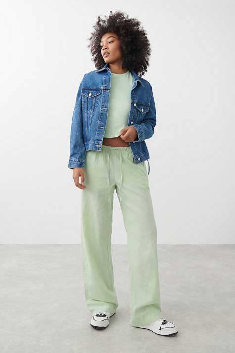 Green Women Gina Tricot Linen Blend Trousers | 14ZVGPJXB