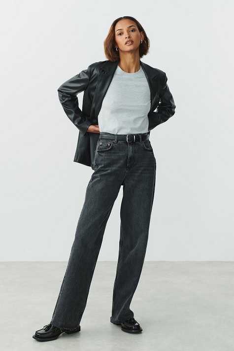 Soft t-shirt with normal fit. The t-shirt is grey and has rounded neckline.