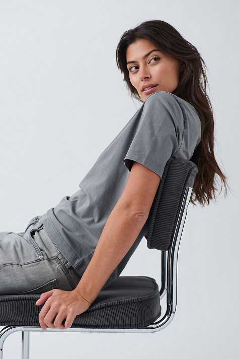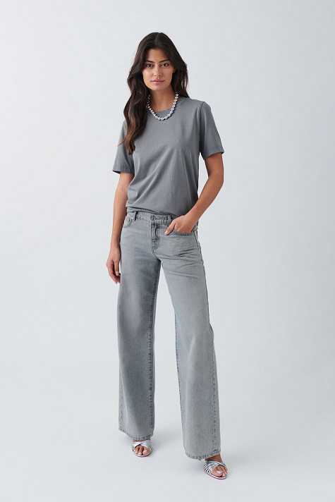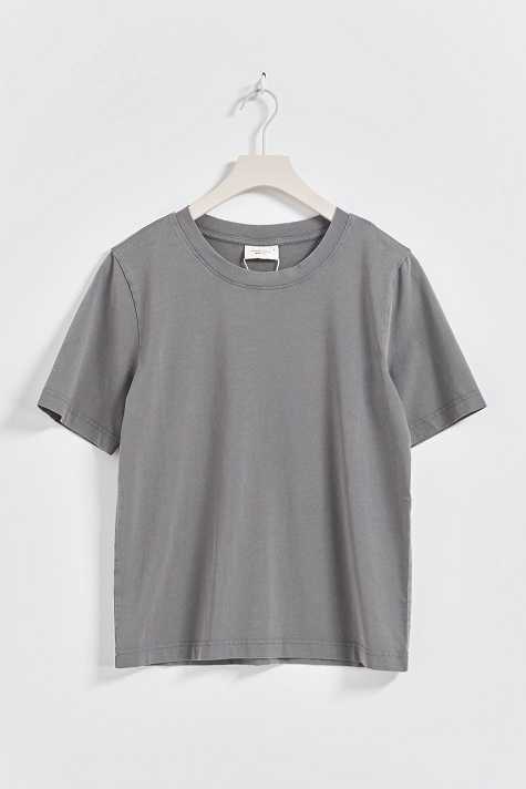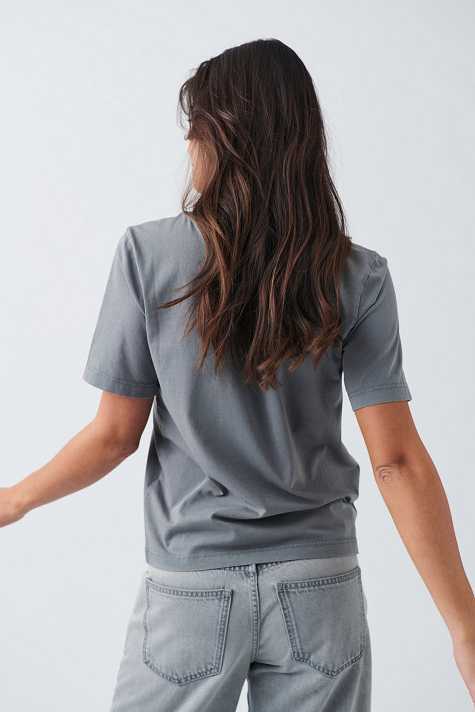 Soft t-shirt with normal fit. The t-shirt is grey and has rounded neckline.