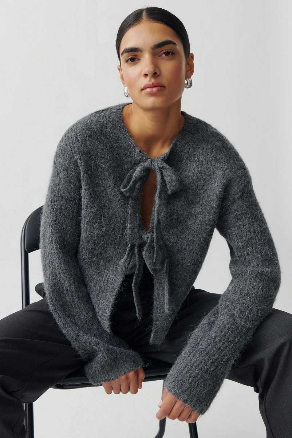 Grey Women Gina Tricot Knitted Tie Cardigan | 69UHINPYT