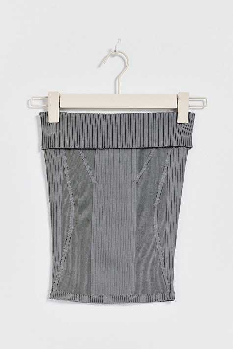 Knitted tube top with figure-hugging fit. The top is grey and has turn-down upper edge.
