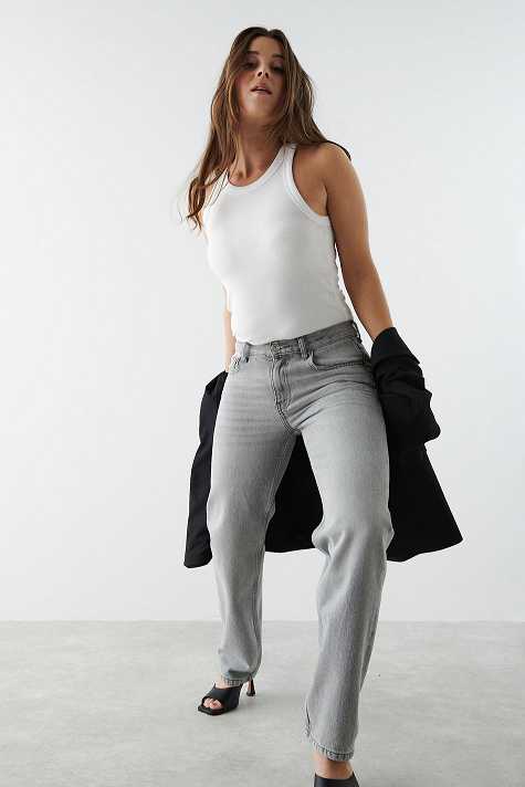 :: Grey Women Gina Tricot Low Straight Petite Jeans | 76MAYUDGI