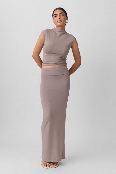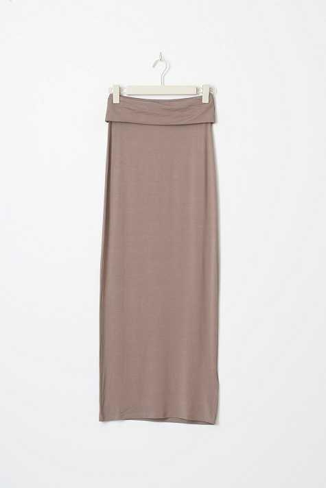 Soft touch – second skin comfort. Maxi skirt in soft viscose with turn-down waist. The skirt is beige and has regular fit.