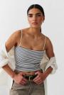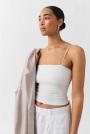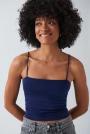 Short singlet with straight upper edge. The singlet is pink and has slim shoulder straps.