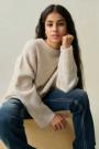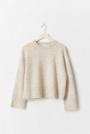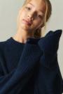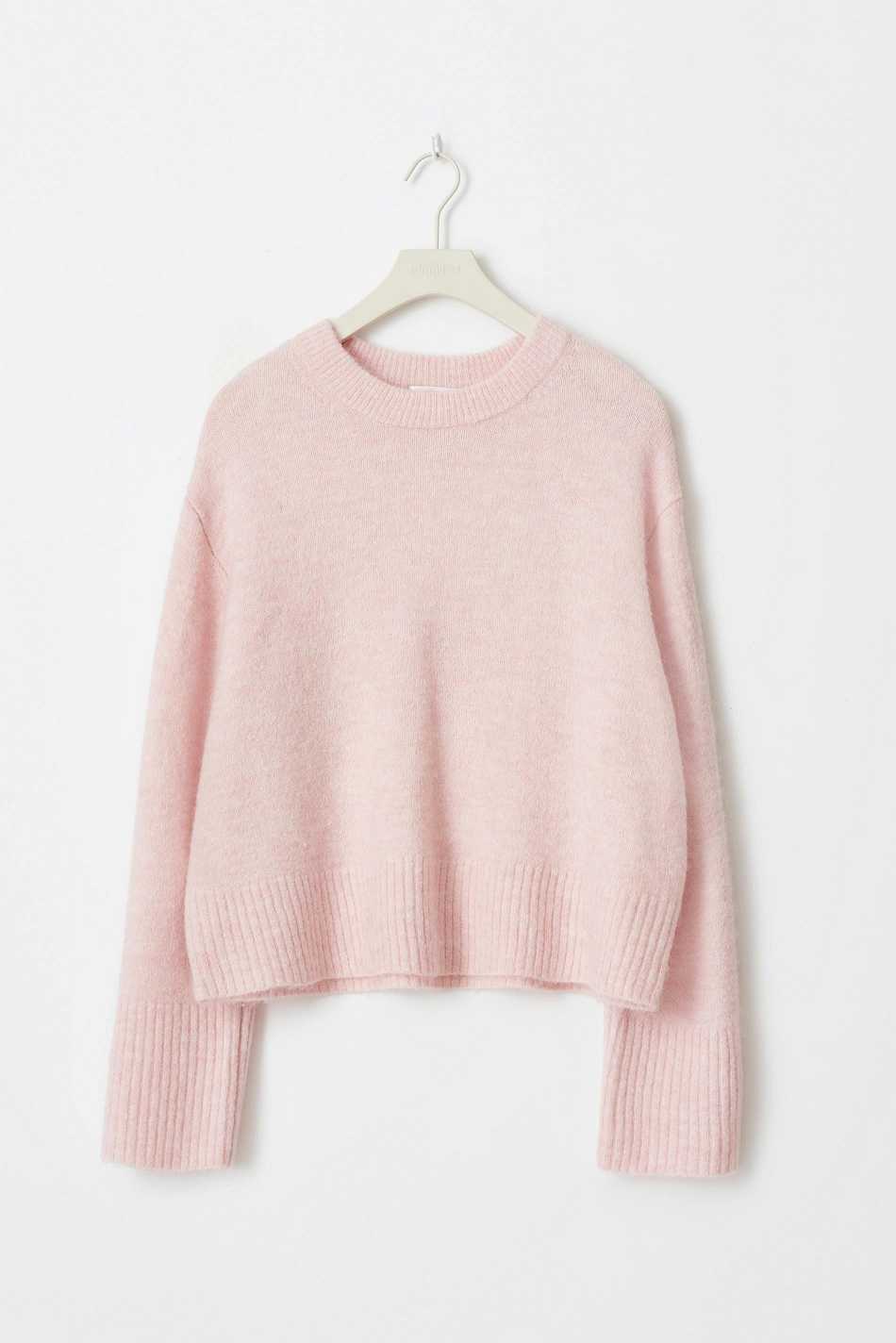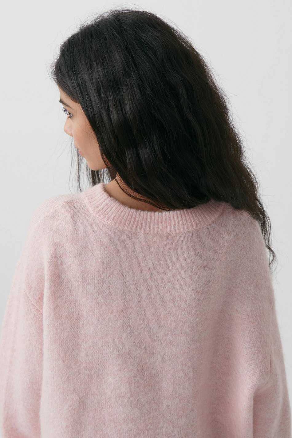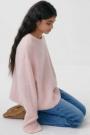 Knitted sweater with oversize fit. The sweat is pink and has round neckline. It has long sleeve and wide ribbing at sleeve ends and at the bottom.