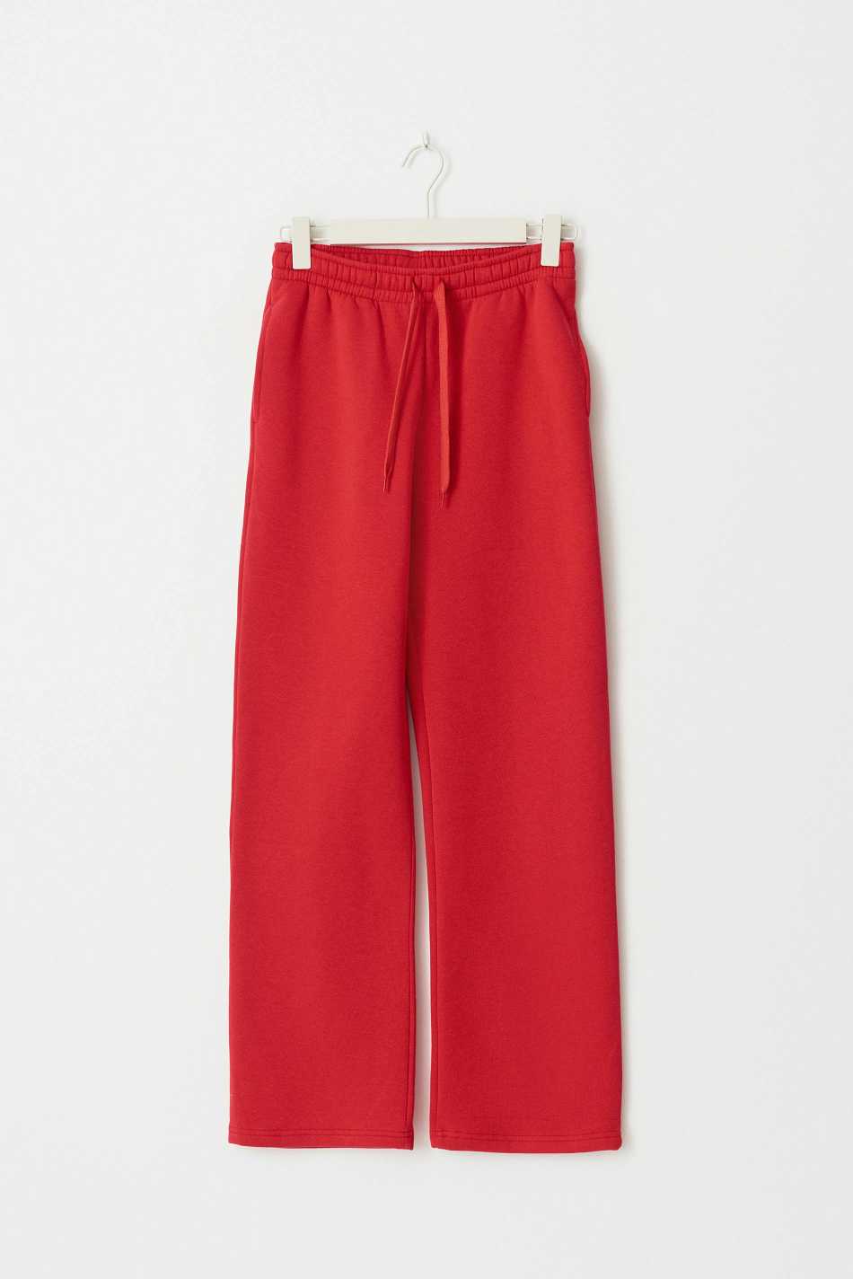 Tracksuit trousers with normal fit. The trousers are red and have pockets in the sides. They have straight legs and elastic at the waist with self-tie at the front.
