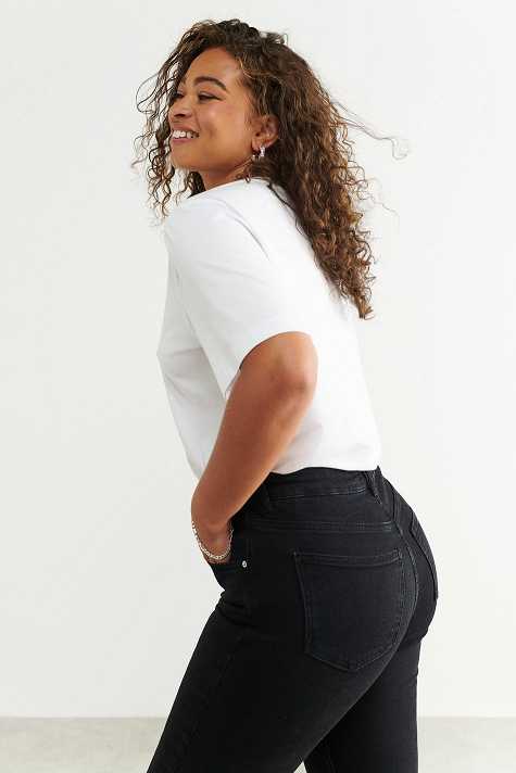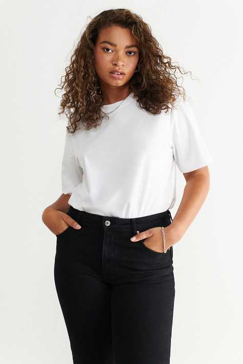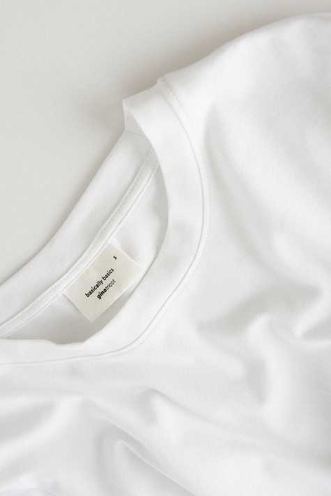 Soft t-shirt with normal fit. The t-shirt is white and has rounded neckline.