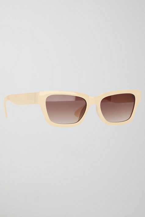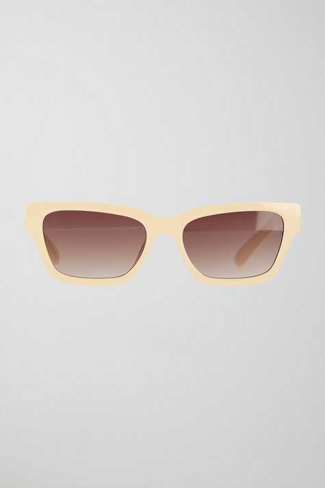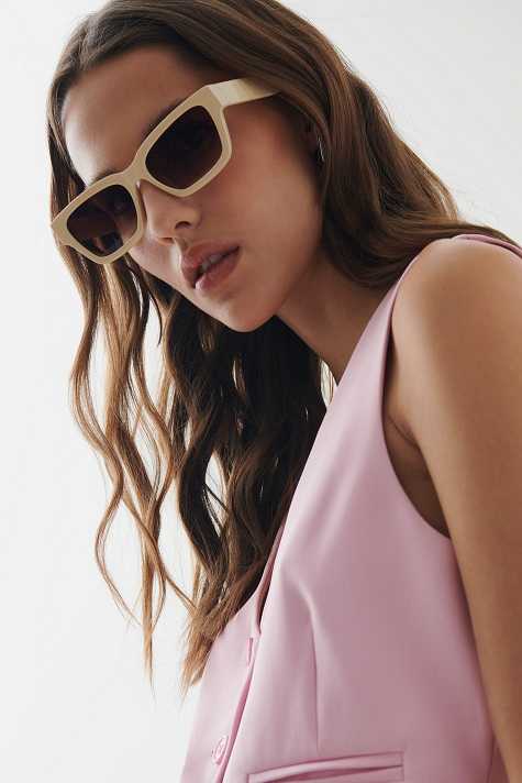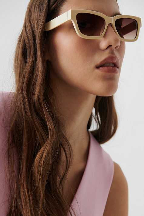 Sunglasses with plastic frames in recycled plastic. The sunglasses is beige and has tinted glasses with UV400 protection.