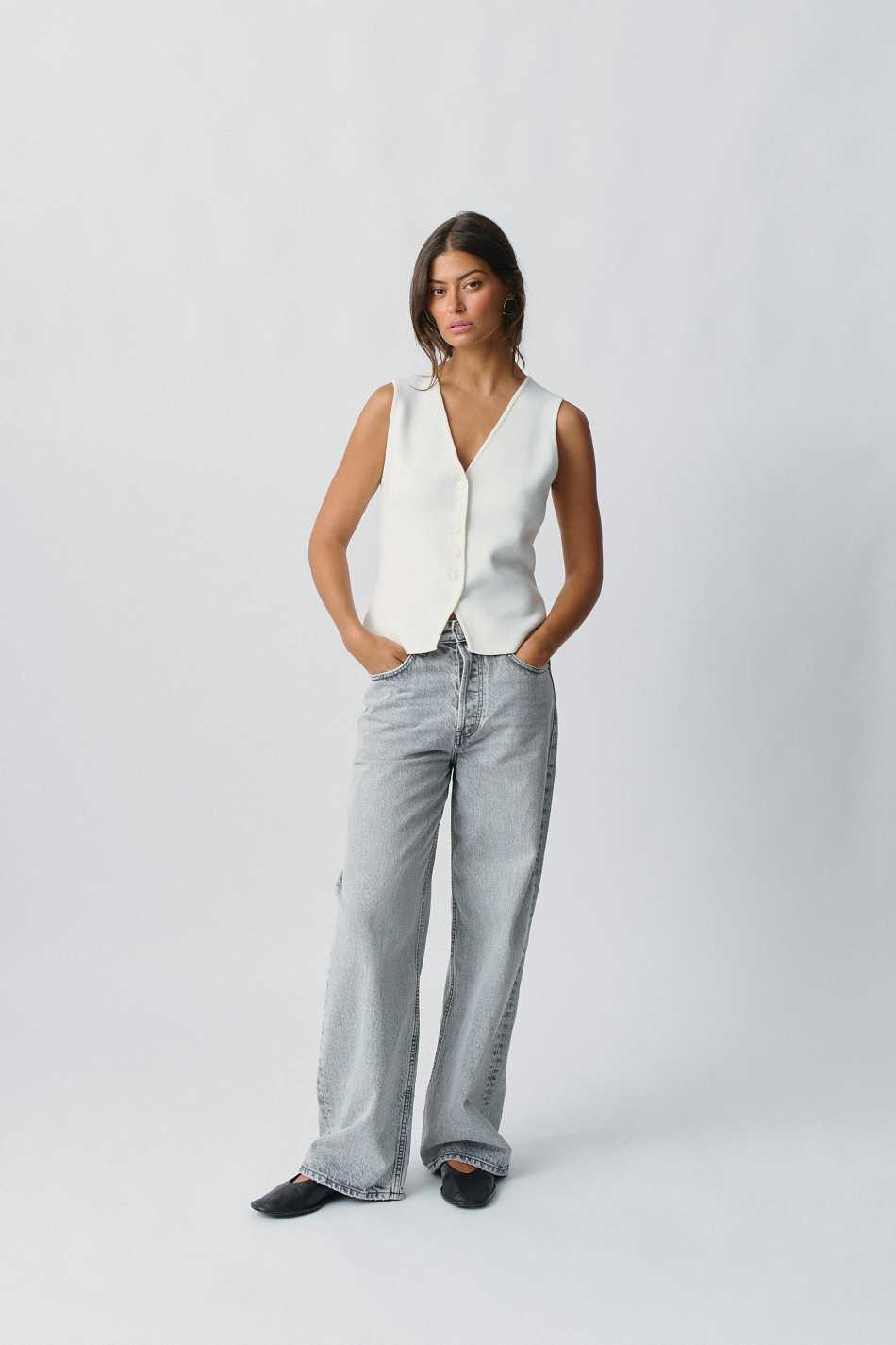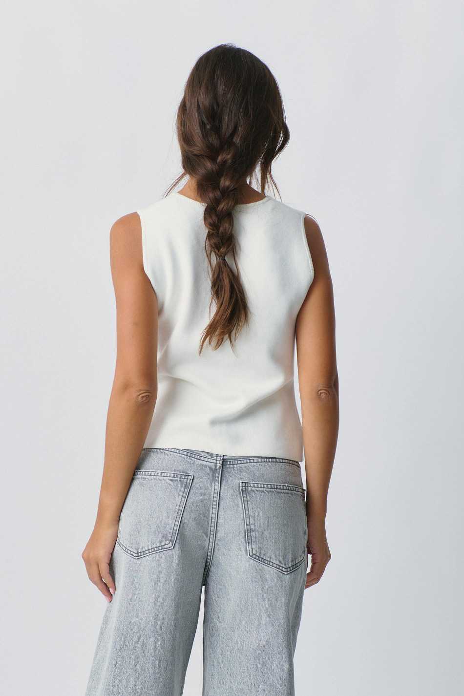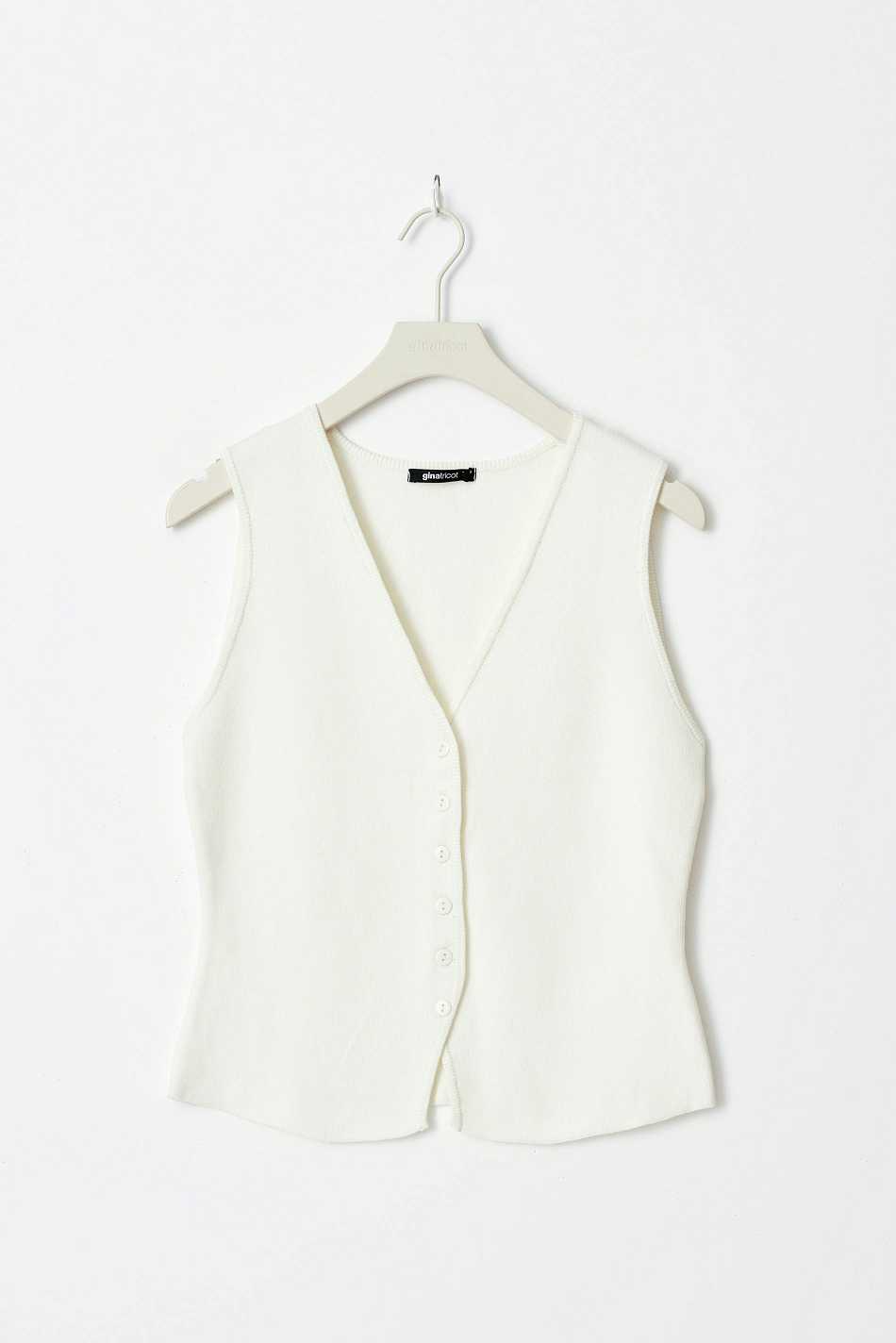 Knitted waistcoat with buttoning at the front. The waistcoat is white and has v-neck.