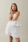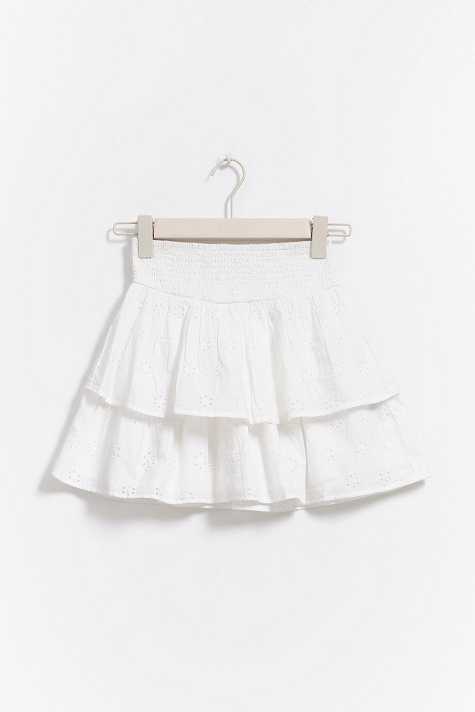Short frill skirt in cotton with hole embroidery. The skirt is white and has smocked waist.