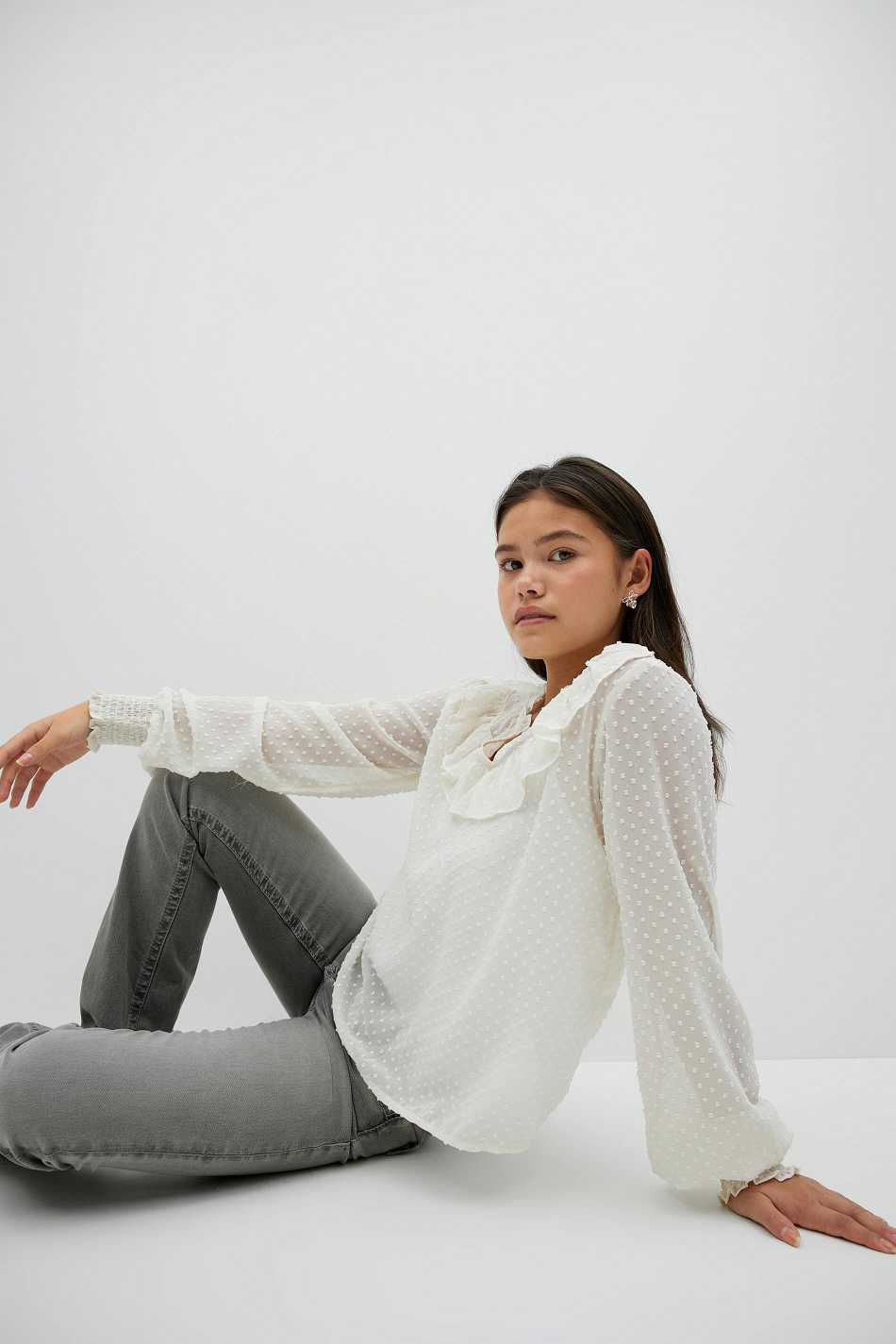White Young Gina Tricot Y Flounce Blouse | 19EUPYTDO